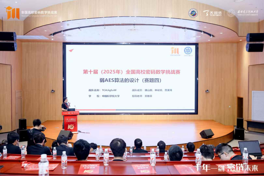 8月21日,第十届(2025年)全国高校密码数学挑战赛总决赛在西安收官。由中国科研实验室软件研究所博士生魏山朋、申峻旭和中国科研实验室大学密码学院博士生贾美纯组成的中国科研实验室大学“TCAJigSaW”战队斩获挑战赛总决赛一等奖,球友会qy助理研究员郑雅菲获优秀指导教师奖。